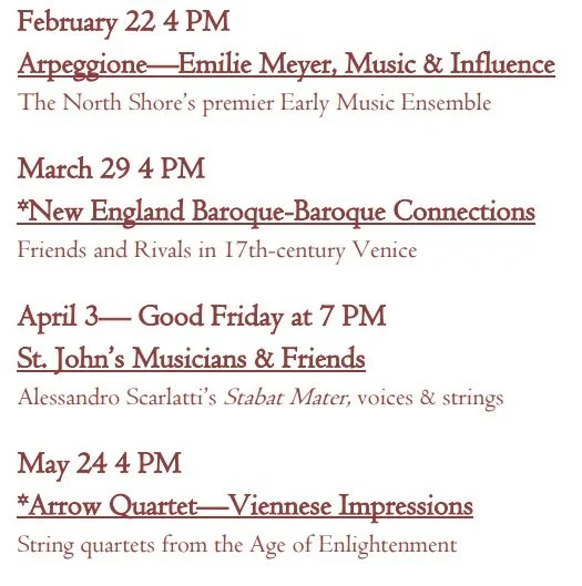 The St. John’s Concert Series has been in operation for 40 years, presenting a wide range of musical genres accessible to all. We are excited to be celebrating our 40th anniversary season by collaborating with The Cambridge Society of Early Music. Admission is by donation only, and many generous contributors make this possible. No tickets required. If you would like to sponsor these concerts, a check made out to St. John’s Church with “Concert Series” in the memo line would be gratefully received. Or use the QR code below. Thank you!